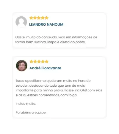 Nossas apostilas são focadas exclusivamente na OAB, contemplando somente assuntos cobrados em prova.